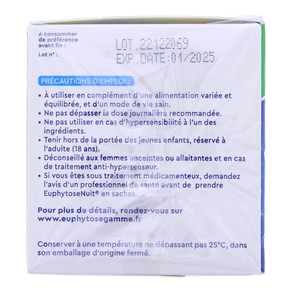 Conseils d'utilisation : 1 sachet à infuser par jour 30 à 60 minutes avant le coucher.