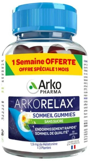 Arkorelax Sommeil Gummies est un complément alimentaire sans sucre sous forme de gummies indiqué pour favoriser un endormissement rapide et un sommeil de qualité.