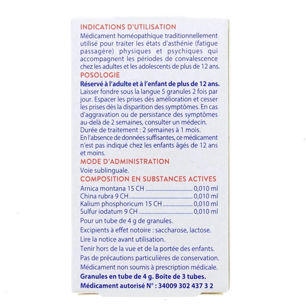 Le médicament homéopathique Convameo Granules du laboratoire Boiron est indiqué pour traiter la fatigue passagère physique et la fatigue passagère psychique qui accompagnent les périodes de convalescences.
