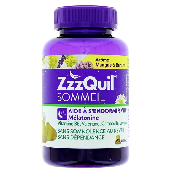 Retrouvez une belle nuit avec un sommeil sain et de qualité grâce aux gommes ZzzQuil Sommeil arôme mangue & banane. Sans somnolence au réveil et sans dépendance.