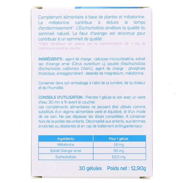 - La mélatonine (1,8 mg) contribue à faciliter l'endormissement en réduisant son temps.