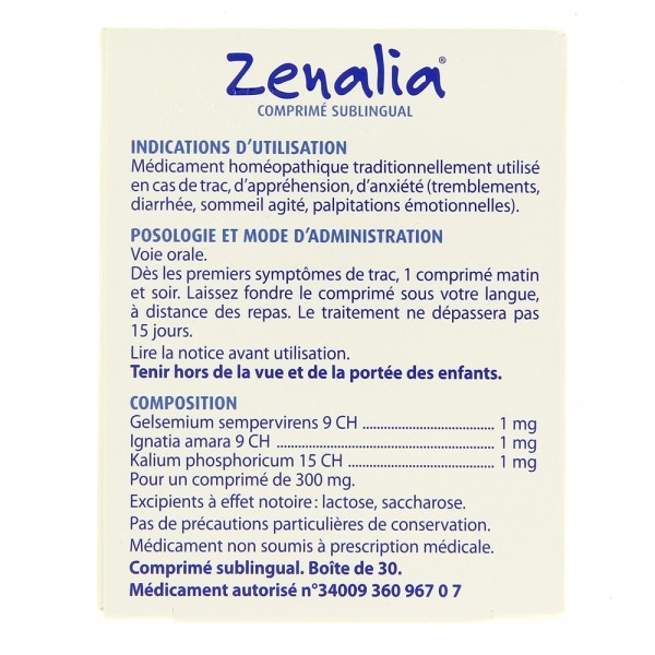 Zenalia est un médicament du laboratoire homéopathique Boiron. Zenalia associe plusieurs souches homéopathiques et est indiqué dans le traitement du stress.