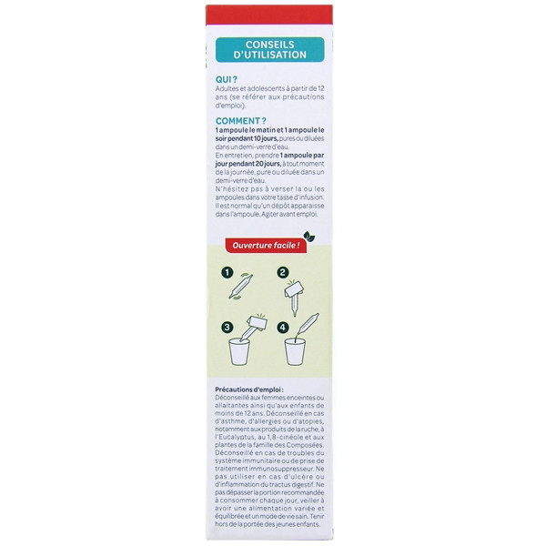 Sève Impériale Bio est indiqué pour les adultes et les adolescents à partir de 12 ans. Prenez 1 ampoule le matin et 1 ampoule le soir pendant 10 jours. En entretien, administrer 1 ampoule pendant 20 jours à tout moment de la journée. Vous pouvez prendre ce complément pur ou dilué dans un demi-verre d’eau.