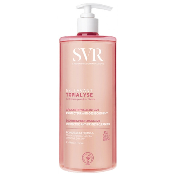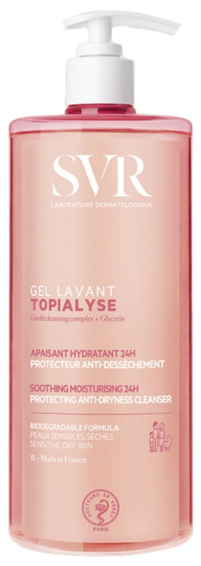 Topialyse Gel Lavant des laboratoires SVR est un nettoyant doux protecteur anti-dessèchement sans savon. Topialyse Gel Lavant nettoie en douceur et protège de la tête aux pieds les peaux sensibles et sèches.
