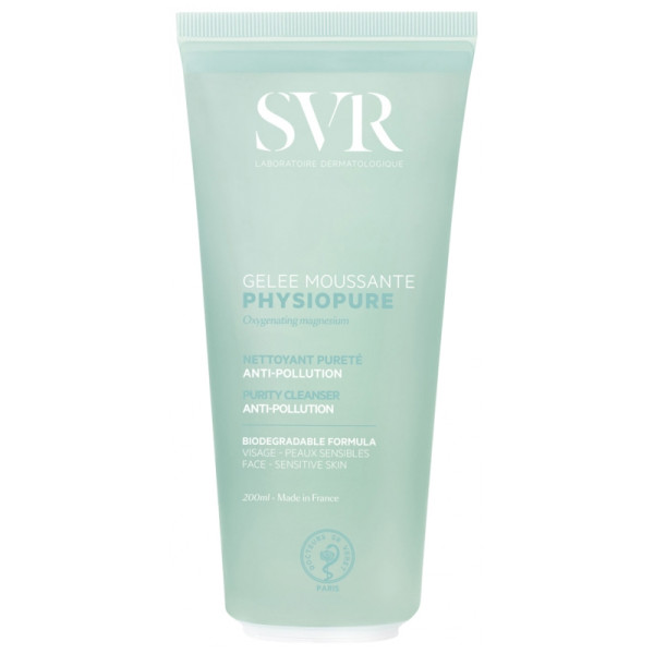 Physiopure Gelée Moussante 200ml des laboratoires SVR est un soin nettoyant du visage élaboré pour éliminer les impuretés, les particules de pollution et effacer les traces de maquillage, y compris les fards waterproof. Cette gelée épure la peau sans la dessécher. Elle convient ainsi à tous les types de peau, même aux plus sensibles.