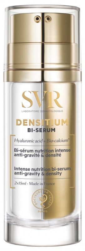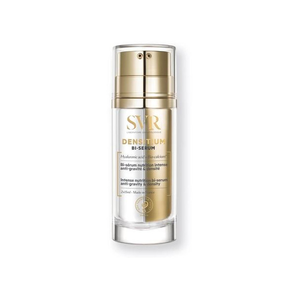 Densitum Bi-sérum des laboratoires SVR est un sérum à la double formule anti-âge et nutrition intense. Ce soin du visage lutte contre les 3 problématiques majeures des peaux matures : relâchement cutané, rides et sécheresse avancée.