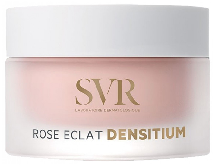 Densitium Rose Éclat des laboratoires SVR est un soin du visage anti-âge matinale à effet bonne mine immédiat. Ce soin anti-âge possède des pigments roses pour illuminer et unifier le teint. De plus, il possède des actifs qui visent à redensifier et raffermir la peau.
