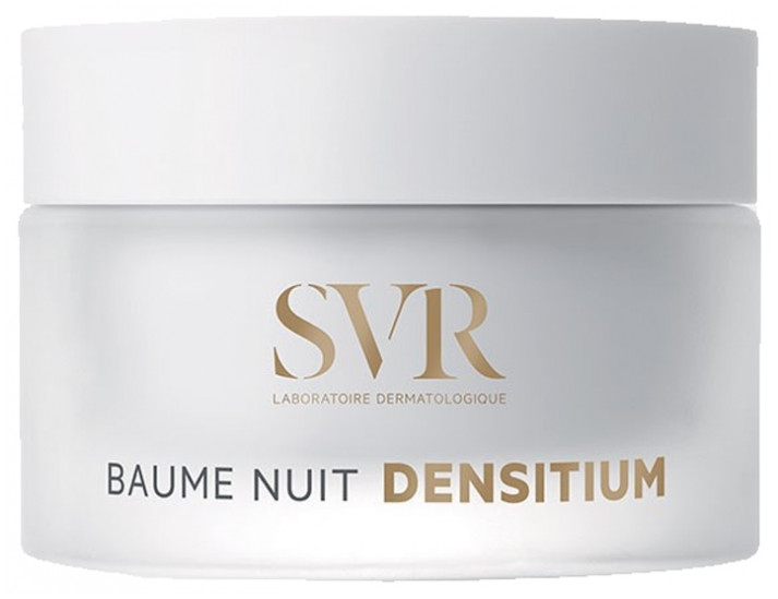 Densitium Baume Nuit des laboratoires SVR est un soin du visage anti-âge globale adapté à tous les types de peaux matures. Ce soin offre une réelle action régénérante durant le sommeil pour une peau plus lisse, nourrie et fraîche au réveil.