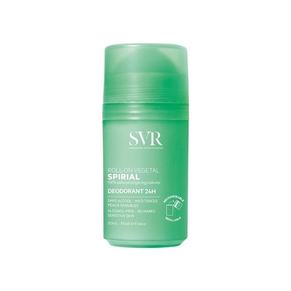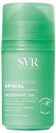 Le roll-on végétal Spirial du laboratoire SVR est un déodorant sans alcool qui permet de lutter contre la transpiration et les mauvaises odeurs pendant 24 h sans laisser de traces. Ce déodorant végétal convient aux peaux sensibles.