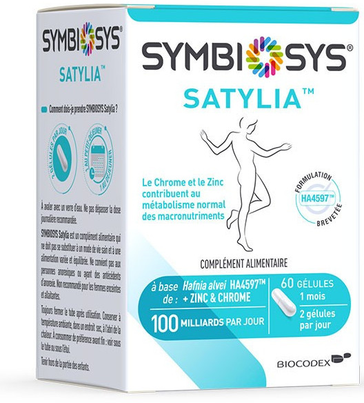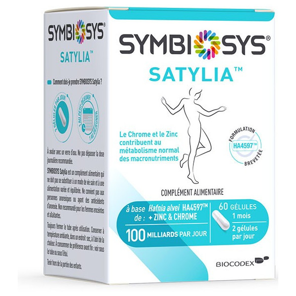 Symbiosys Satylia est un complément alimentaire à base d’une souche microbiotique spécifique, de chrome et de zinc. Comme l'explique le laboratoire sur la boîte de Satylia, "le zinc contribue au métabolisme normal des macronutriments (dont les glucides et les acides gras) et le chrome participe au maintien d’une glycémie normale".