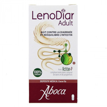 Lenodiar Adult est indiqué pour le traitement de la diarrhée aiguë d'origine variée (infection virale, syndromes grippaux caractérisés par la diarrhée, diarrhée iatrogène due à la prise de médicaments, conditions de stress, styles alimentaires et de vie incorrects, diarrhée du voyageur, changements hormonaux par exemple durant le cycle menstruel) et pour le traitement des aggravations de la diarrhée chronique (comme par exemple IBS - syndrome de l'intestin irritable, diarrhée fonctionnelle, maladies inflammatoires intestinales, etc.) en association avec le traitement thérapeutique spécifique. Le produit est indiqué pour les adultes et les enfants à partir de 12 ans.