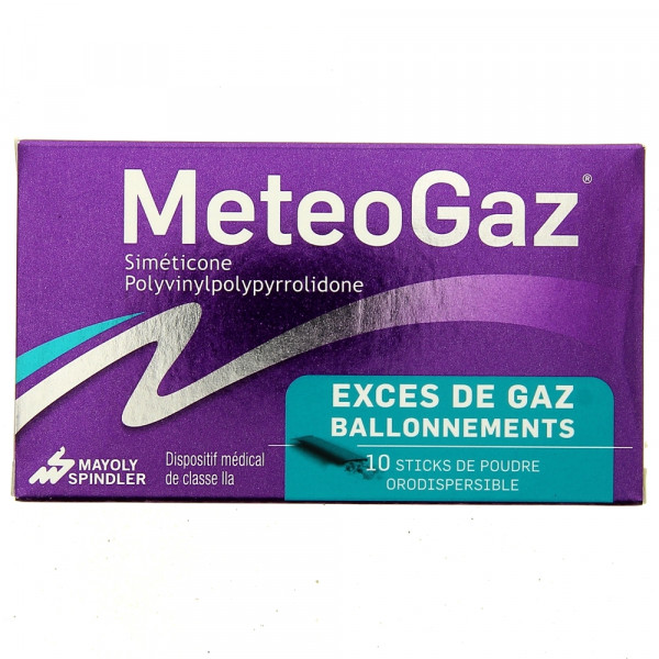 MeteoGaz des laboratoires Mayoly Spindler est un dispositif médical. Les sticks de poudre orodispersible de MeteoGaz sont recommandés pour lutter contre les ballonnements.