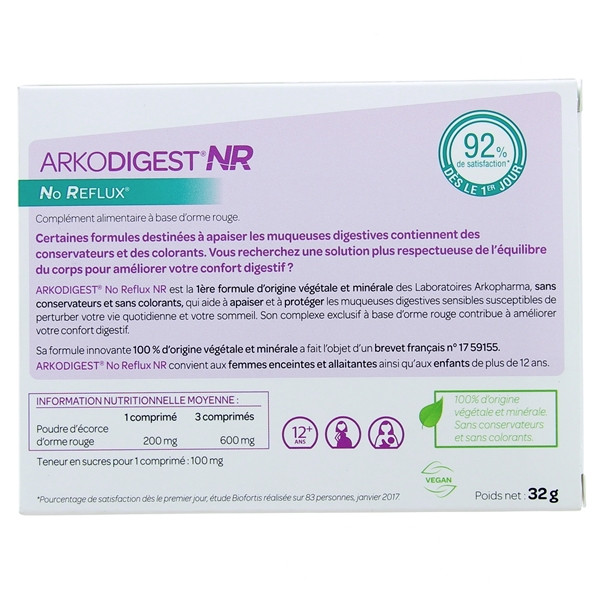 Arkodigest No Reflux NR est la 1ère formule d'origine végétale et minérale Arkopharma, sans conservateur et sans colorant. Il aide à apaiser et à protéger les muqueuses digestives sensibles, et contribue à l’amélioration du confort digestif.