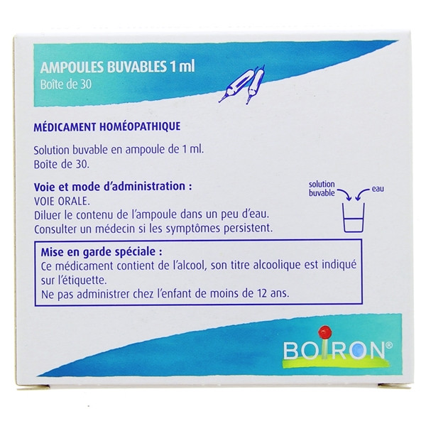 Les ampoules Boiron Intestin Grele sont disponibles à l'achat sur notre pharmacie en ligne. IllicoPharma propose un large choix de médicaments homéopathiques. Les dilutions disponibles peuvent varier en fonction des souches. Les ampoules d'homéopathie Boiron ne disposent pas d'indications thérapeutiques, demandez conseil à votre médecin.
