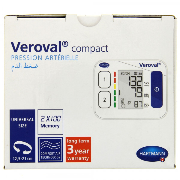 Le tensiomètre Veroval compact est un autotensiomètre pour la mesure au poignet de la tension artérielle. Veroval compact est un tensiomètre le marque Hartmann, reconnue pour la qualité et la précision de ses produits.