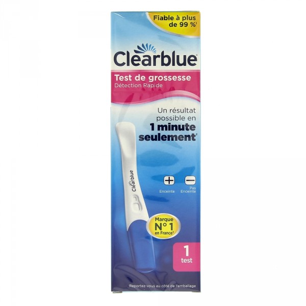 Le test de grossesse Clearblue Détection Rapide de la marque Clearblue est spécialement conçu pour déterminer exactement si une femme est enceinte ou pas. Très pratique et facile à utiliser, il donne un résultat précis à hauteur de 99 %.