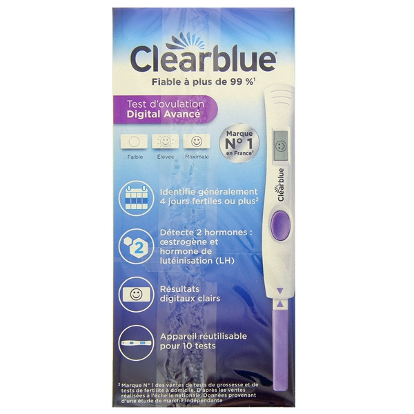 Le test d'ovulation digital avancé 2 hormones de la marque Clearblue est conçu pour les femmes désirant connaître les jours les plus propices pour la conception d'un bébé. Il est très facile et pratique à utiliser.