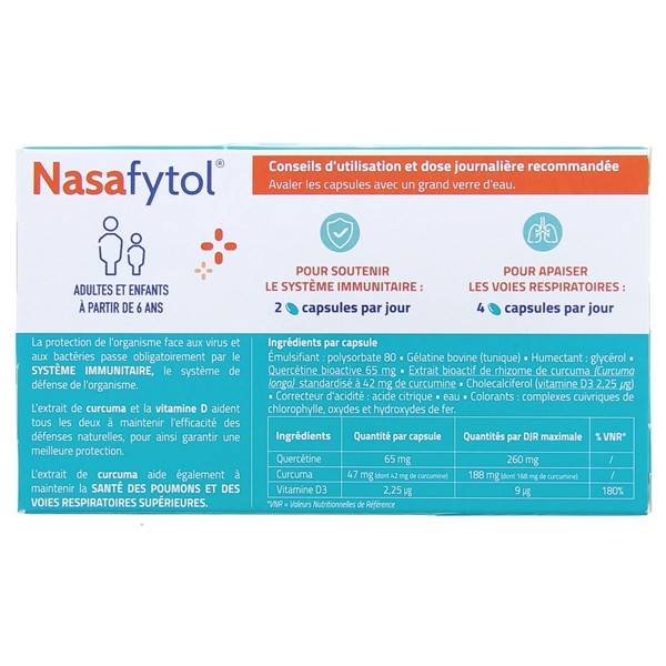 Nasafytol du laboratoire Tilman est un complément alimentaire à base de Quercétine, Curcuma et Vitamine D3. Nasafytol est indiqué pour aider à maintenir l'efficacité des défenses naturelles et la santé des poumons et des voies respiratoires supérieures.