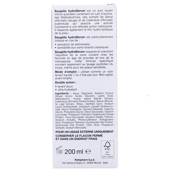 HydraSerum Hydratation & Confort Saugella est un soin lavant intime quotidien indiqué en cas de sensation de sécheresse ou de sensibilité aux soins lavants classiques.