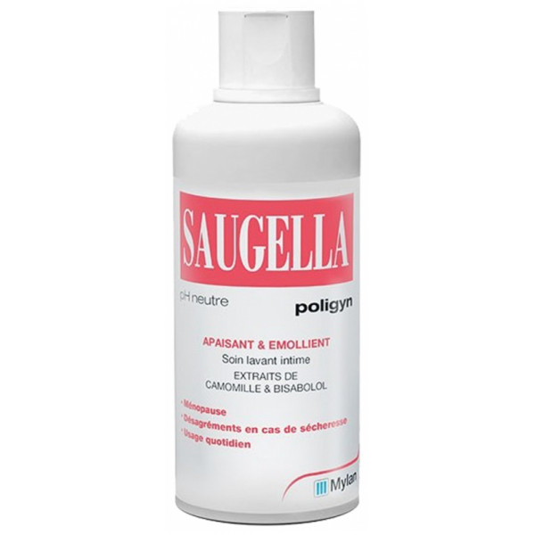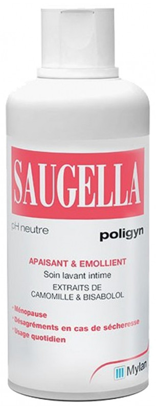 Le soin lavant intime Polygin Saugella est un nettoyant quotidien qui a été formulé à partir d'extraits de Camomille et de Bisabolol pour rafraîchir et adoucir les muqueuses fragiles asséchées ou irritées liés à la ménopause.