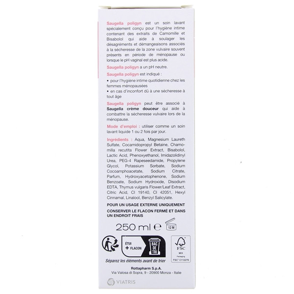 Pour l'hygiène intime de la femme ménopausée au quotidien, optez pour le soin lavant intime Poligyn de la marque Saugella.