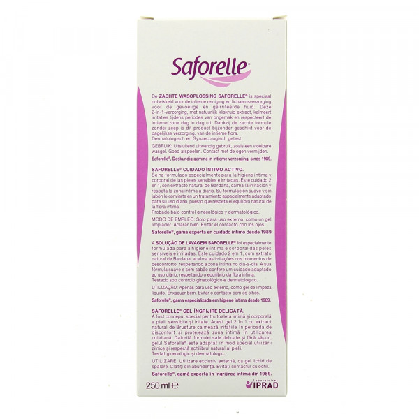 Le soin lavant doux de la marque Saforelle est indiqué pour l'hygiène intime et corporelle quotidienne des peaux irritées. Il est formulé à partir d'une association d'agents surgras et d'extraits de Bardane. Doté d'un pH alcalin doux, ce soin répond aux besoins santé des peaux irritées et particulièrement sensibles. Les actifs contenus dans ce soin nettoient la peau en douceur et apaisent les désagréments touchant la sphère intime : irritations, démangeaisons et mauvaises odeurs. Ce soin hypoallergénique ne contient pas de paraben.