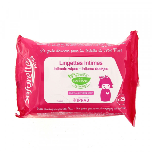 Les lingettes intimes Saforelle Miss des laboratoires Iprad sont à base de bardane. Elles assurent une hygiène intime parfaite de votre Miss. Les lingettes intimes Saforelle Miss sont disponibles en sachets de 25 lingettes sur notre pharmacie en ligne. Pratiques, elles facilitent l'apprentissage de la propreté.