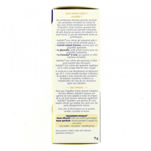 La HYDRALIN GYN crème-gel de la marque Bayer apaise et protège efficacement la zone intime sensible ou irritée avec l'effet fraicheur immediat.