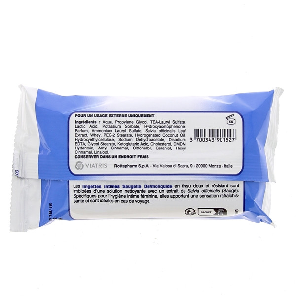 Les lingettes nettoyantes intimes Dermoliquide Saugella ont été fabriquées à base d'extraits naturels de Sauge pour garantir une parfaite hygiène intime au quotidien.