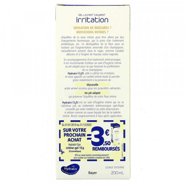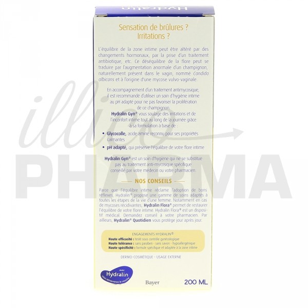 Hydralin Gyn est un soin d'hygiène intime à usage ponctuel, utilisé pour calmer les désagréments pouvant être liés à une augmentation anormale d'un champignon naturellement présent dans le vagin (Candida albicans) sous l'influence de certains facteurs (pH < 5, stress, port de vêtements serrés...). En accompagnement d'un traitement antimycosique, il est recommandé d'utiliser un soin d'hygiène intime au pH adapté pour ne pas favoriser la prolifération de ce champignon.