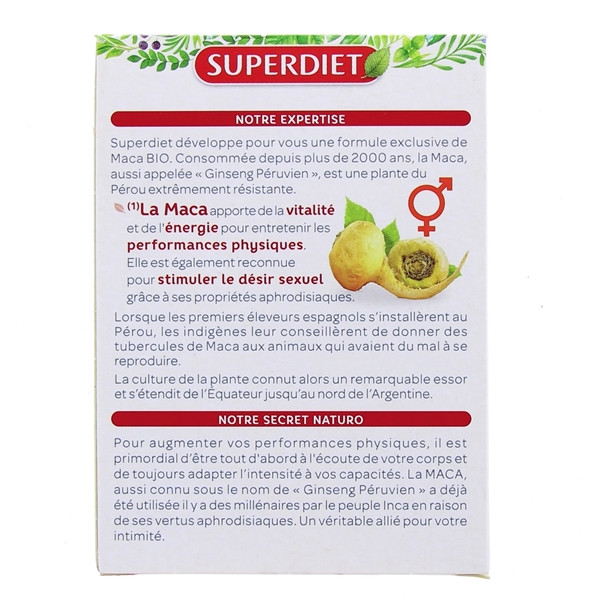 Maca Bio de Super Diet est un complément alimentaire formulé à base de Maca reconnue pour :