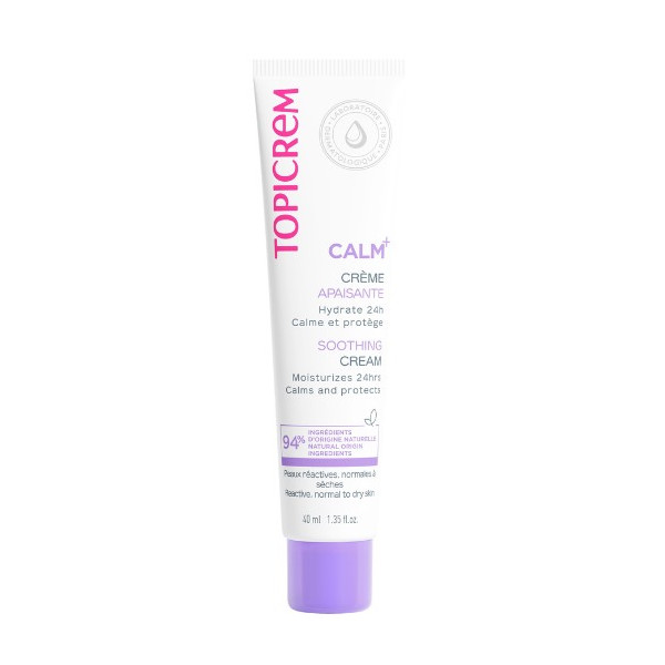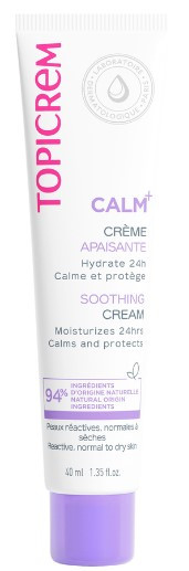 Calm+ Crème Apaisante de Topicrem est destinée aux peaux réactives, normales à sèches. Ce soin quotidien à la formule épurée hydrate, calme et protège efficacement la peau du visage.