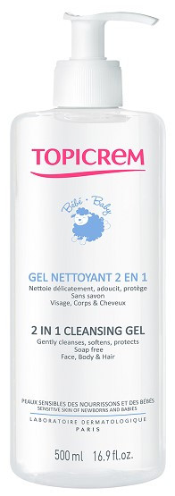 - Gel nettoyant Bébé Topricrem à utiliser au quotidien, le matin ou le soir.