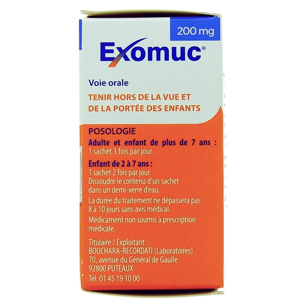 Le médicament Exomuc est un fluidifiant des sécrétions bronchiques disponible sans prescription médicale pour prendre en charge la toux grasse. Il facilite ainsi leur évacuation par l'expectoration.