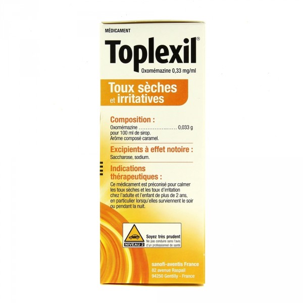 Le médicament Toplexil est disponible en flacon de 150ml.