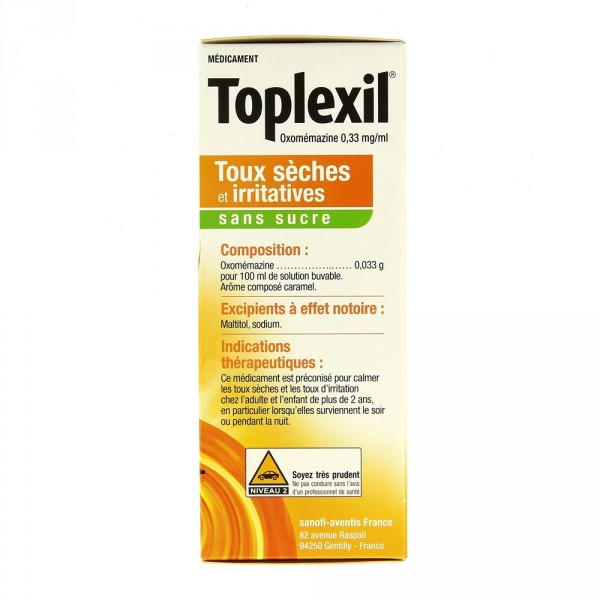 Le sirop Toplexil est un médicament indiqué contre les toux tèches.