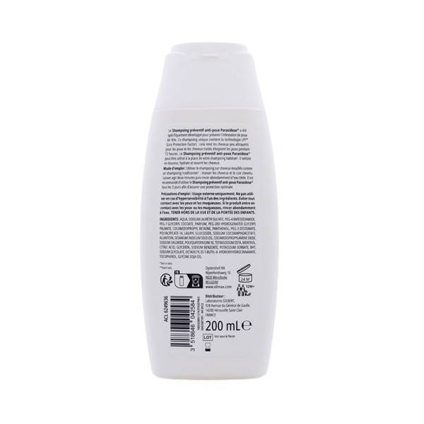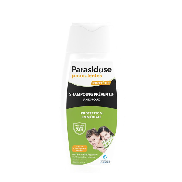 Le shampoing préventif anti-poux Parasidose nettoie, hydrate et nourrit les cheveux en douceur. Il offre une protection immédiate et pendant 3 jours contre les poux et les lentes. Ce shampoing peut être utilisé à la place de votre shampoing habituel. Pour adultes et enfants dès 12 mois.