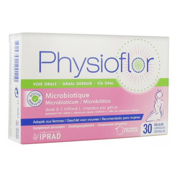 Physioflor Microbiotiques des Laboratoires IPRAD est un complément alimentaire qui apporte par voie orale une souche microbiotique brevetée de Lactobacillus Crispatus, espèce naturellement présente dans une flore vaginale.