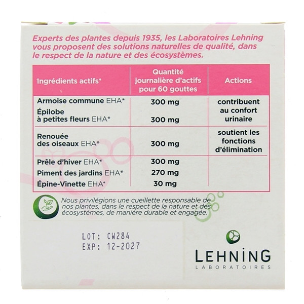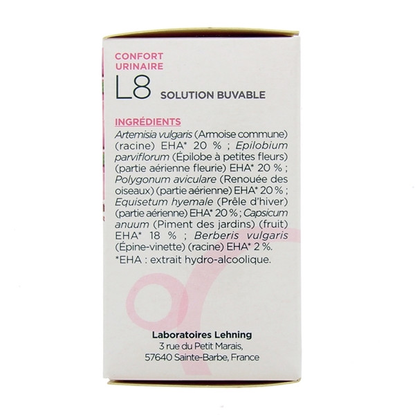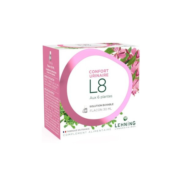 Lehning L8 solution buvable est un complément alimentaire à base de 6 plantes pour le confort urinaire.