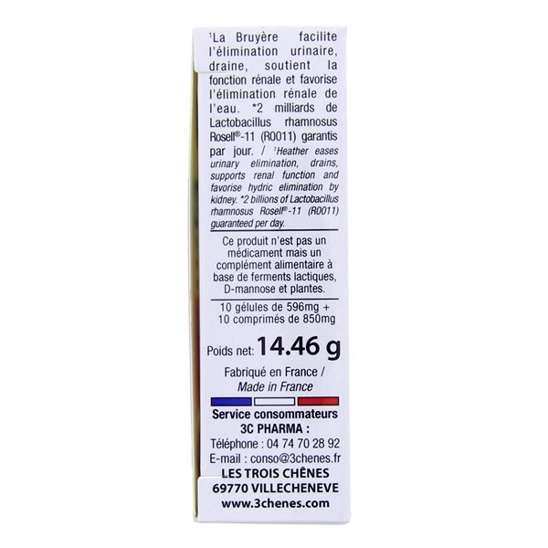 Ce complément alimentaire est formulé à base de Canneberge titrée en PACs, de Probiotiques, de D-mannose et de Bruyère.
