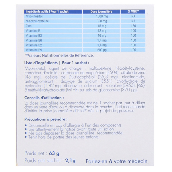 - Il est conseillé de prendre 1 sachet de Isitol Fertilité par jour durant 3 mois, dès que vous projetez de concevoir un enfant.