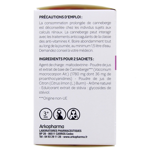 - La consommation prolongée de canneberge est déconseillée chez les individus sujets aux calculs rénaux.
