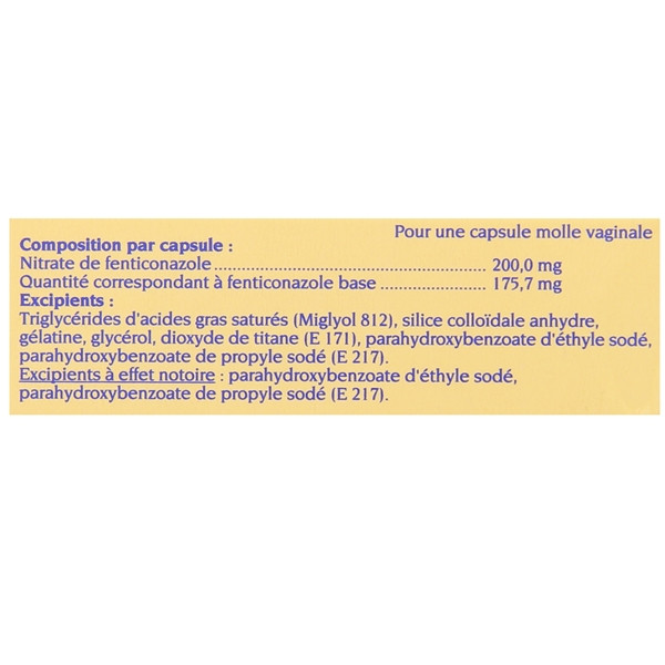 Introduisez la capsule en position couchée, puis restez allongée pendant 5 à 10 minutes. En fondant dans le vagin, la capsule peut être à l'origine d'un écoulement gênant : il est conseillé de porter une protection.