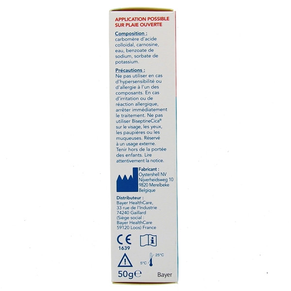 Appliquez une fine couche de biseptineCica® sur la surface à traiter, sans la toucher avec le tube. Ne pas faire pénétrer le gel totalement. Renouvelez l’application si besoin.