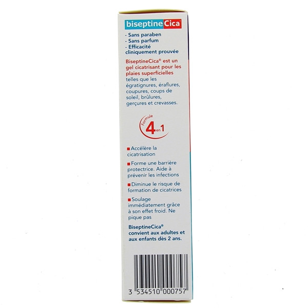 Le gel cicatrisant biseptineCica® accélère la cicatrisation avec un risque diminué de formation de cicatrices.