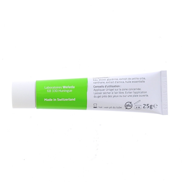 L’Urtigel après piqûres Bio 25 g Weleda contient de l’eau, de l’alcool, de la glycérine, de l’extrait de petite ortie, de la gomme xanthine, de l’extrait d’arnica, du parfum, du linalool.