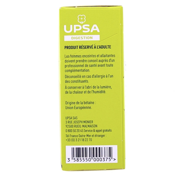 UPSA Digestion Citrate de bétaïne & Citrate de calcium sticks des laboratoires UPSA est un complément alimentaire indiqué pour le bon fonctionnement des enzymes digestives.