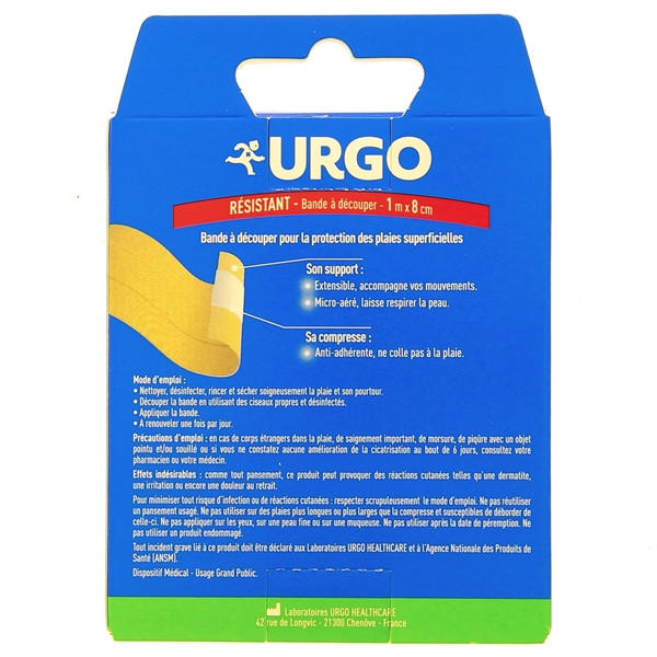 La Bande à découper Résistant 8cmx1m des laboratoires Urgo a été spécialement élaborée pour une utilisation en conditions difficiles. Son support épais est à la fois confortable et élastique, lui permettant de suivre les mouvements. Ce pansement protège les plaies superficielles contre les agressions extérieures.