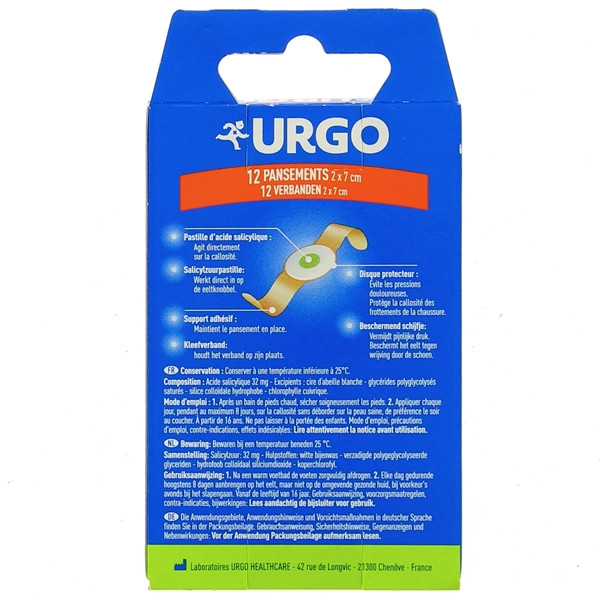 Les pansements coricides de la marque Urgo ont été conçus avec une pastille d'acide salicylique pour le traitement local des callosités installées. Leur support adhésif offre un bon maintien.