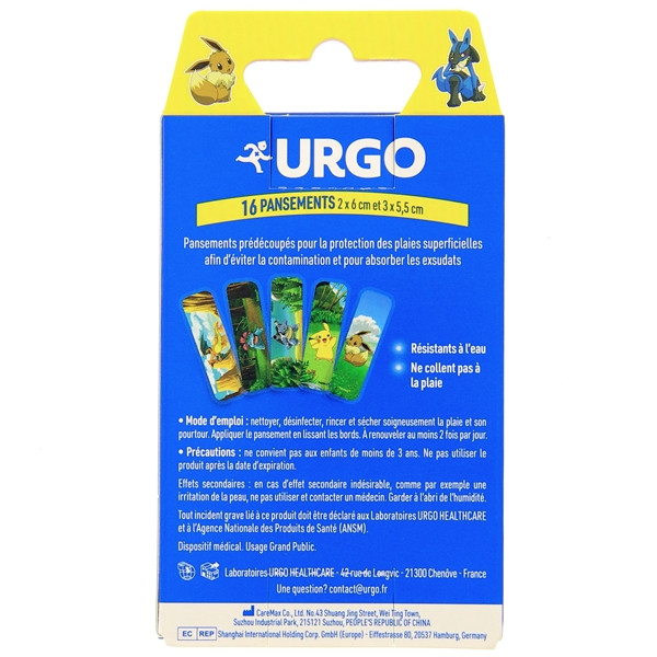 Les Pansements Pokémon sont fabriqués en France par Urgo, un groupe pharmaceutique mondial qui associe son expertise scientifique à la technologie de pointe pour mettre au point des produits répondant aux besoins des patients et des professionnels de santé.